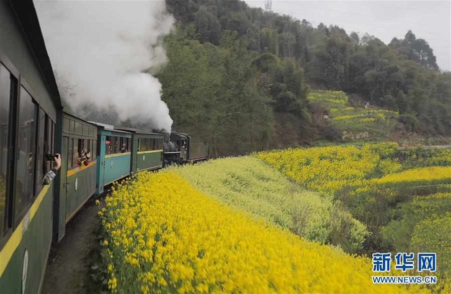 初春時(shí)節(jié),在花海中穿行的嘉陽小火車迎來了每年的旅游旺季,眾多游客慕名前來乘坐。