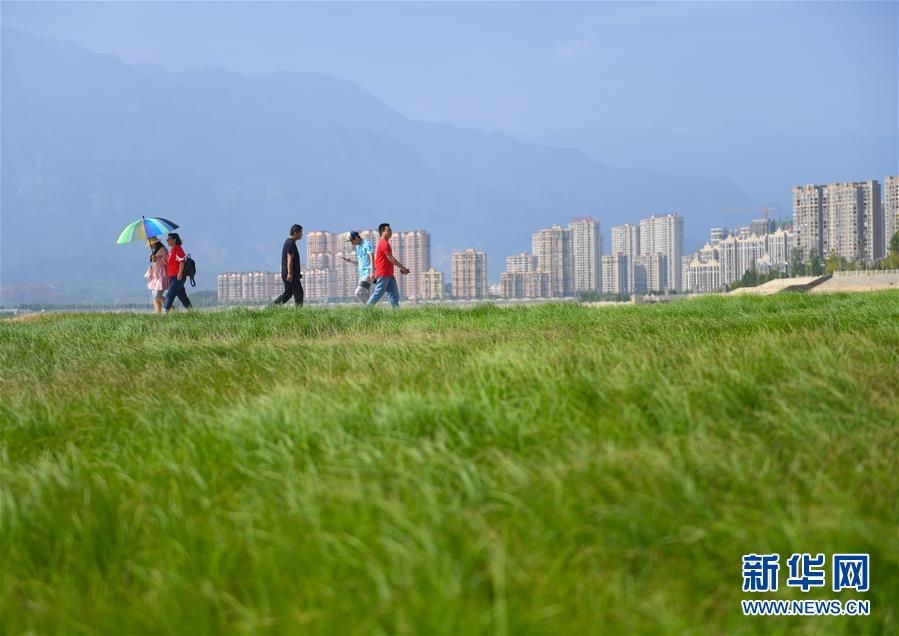 10月9日,江西省廬山市,游客行走在鄱陽湖湖區(qū)干涸的湖面上。新華社記者胡晨歡攝