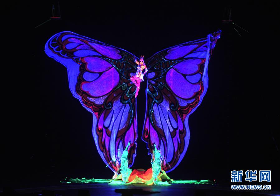 11月3日,來(lái)自俄羅斯的演員在表演《“蝴蝶”——夜光空中飛人》。 新華社記者 牟宇 攝
