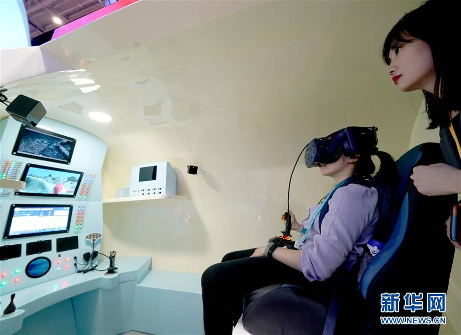 11月5日,觀眾在第二屆進博會中國館“深海勇士”體驗倉內體驗。新華社記者陳建力攝