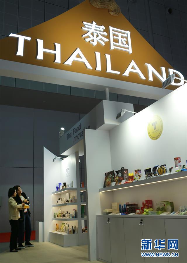 11月5日,參觀者在第二屆進(jìn)博會泰國國家館觀看特色產(chǎn)品。新華社記者鄭衛(wèi)攝