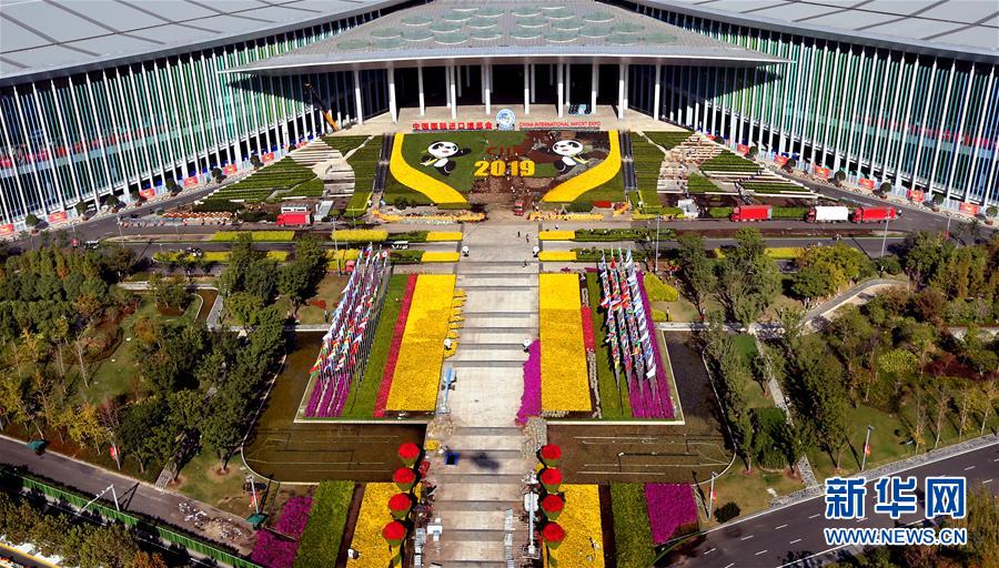 從空中俯瞰國家會展中心(上海)南廣場(11月1日無人機拍攝)。新華社記者凡軍攝