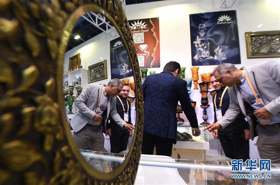 11月5日,伊朗參展商在第二屆進(jìn)博會服務(wù)貿(mào)易展區(qū)的展臺前忙碌。新華社記者尹炣攝