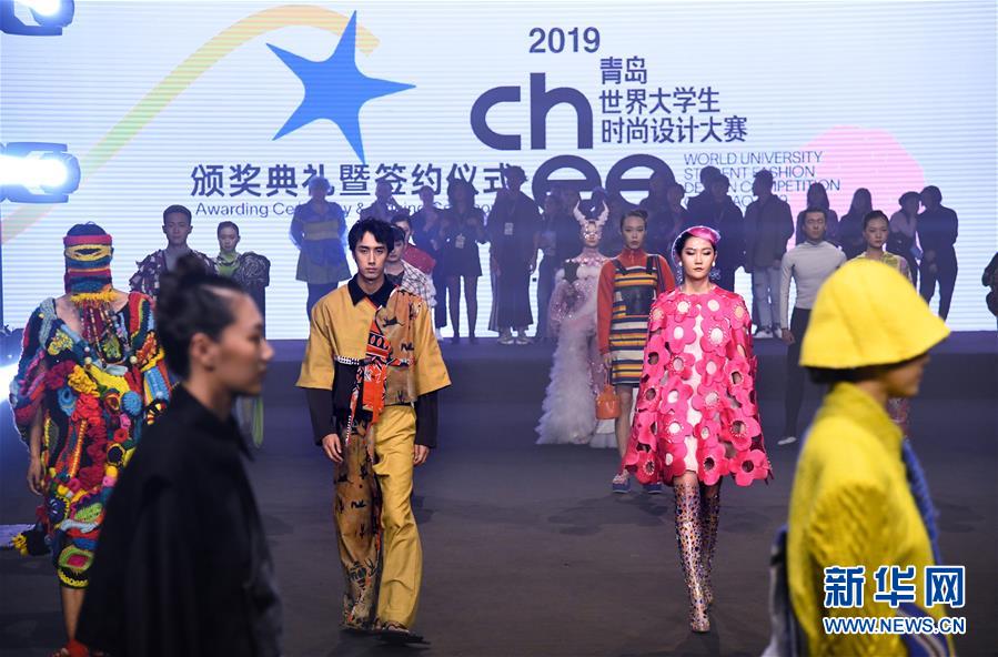 11月9日,模特在閉幕儀式上展示服裝。 當(dāng)日,為期3天的2019青島世界大學(xué)生時尚設(shè)計大賽在山東省青島市落下帷幕。據(jù)介紹,本次大賽展示了國內(nèi)外25所設(shè)計院校的青年設(shè)計師的50套服裝作品。 新華社記者 李紫恒 攝