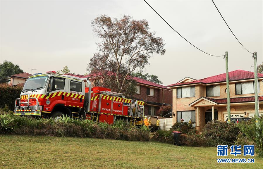11月12日,在澳大利亞悉尼附近的南塔勒馬拉,消防員向居民房屋噴水。新華社記者白雪飛攝