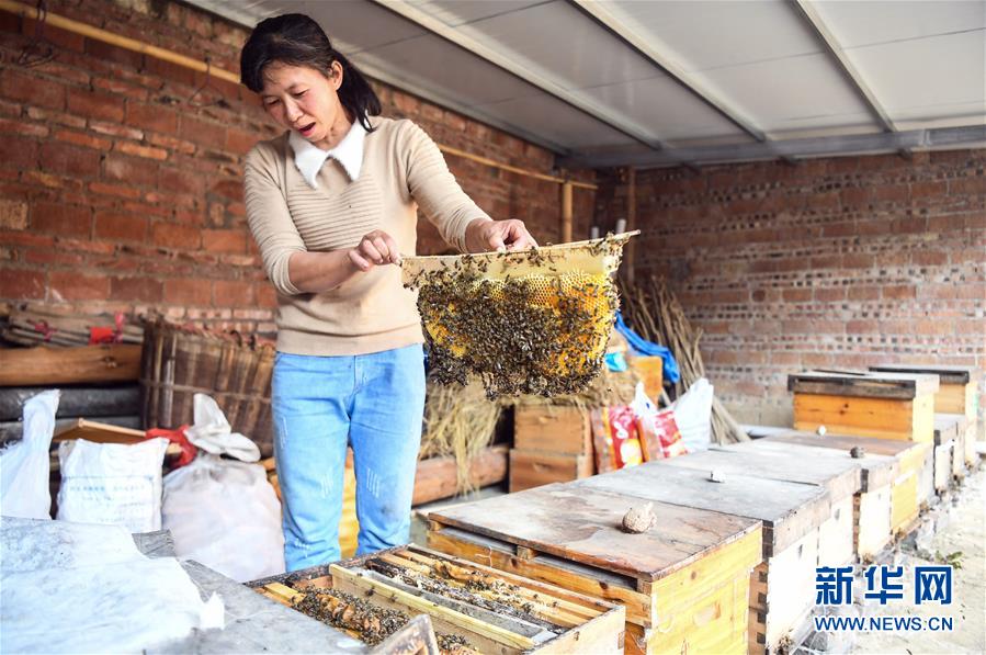 這是葉德華在查看蜂箱(11月12日攝)。 新華社記者張愛林?jǐn)z