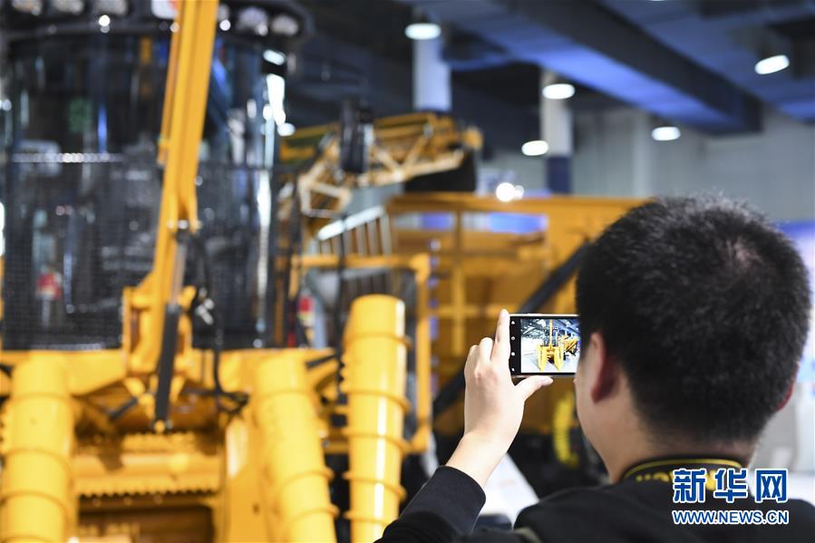 11月16日,參觀者在展會(huì)現(xiàn)場(chǎng)參觀甘蔗收割機(jī)械設(shè)備。新華社記者曹祎銘攝