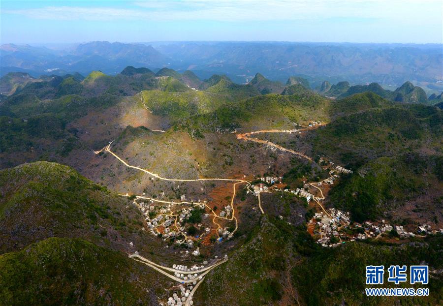 拼版照片:上圖為大化瑤族自治縣七百弄鄉(xiāng)弄雄村各自然屯之間的公路網(wǎng)(11月10日無(wú)人機(jī)拍攝);下圖為在弄雄村弄林屯,孩子們走在回家的山路上(2016年10月26日攝)。新華社記者黃孝邦攝