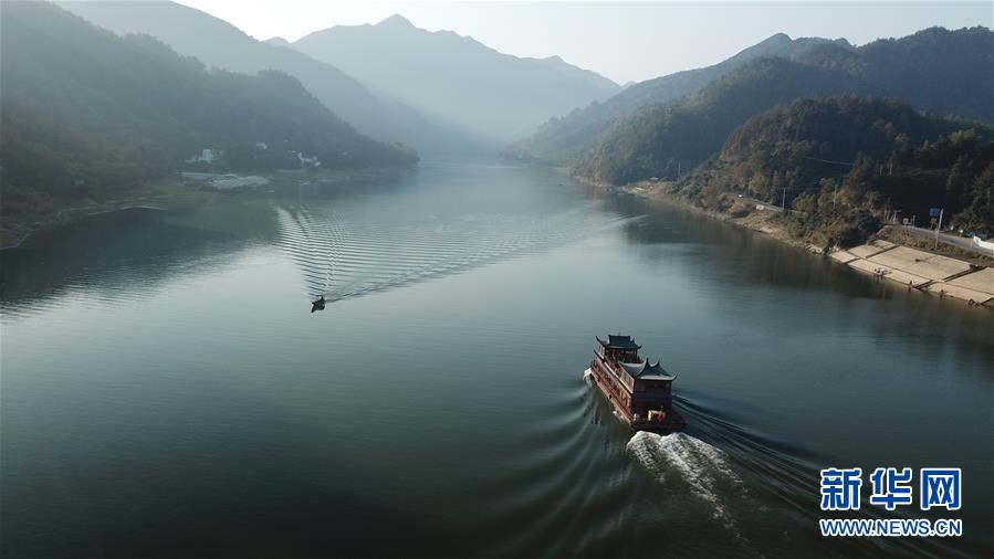 這是11月16日無人機拍攝的新安江山水畫廊。