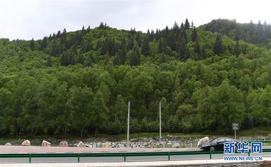 6月11日,一輛汽車(chē)在青海省扎隆溝至碾伯鎮(zhèn)公路上行駛。新華社記者張宏祥攝