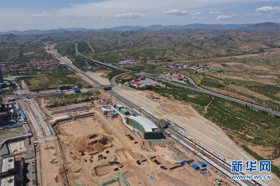 建設(shè)中的京張高鐵下花園北站(5月29日無人機(jī)拍攝)。新華社記者邢廣利攝