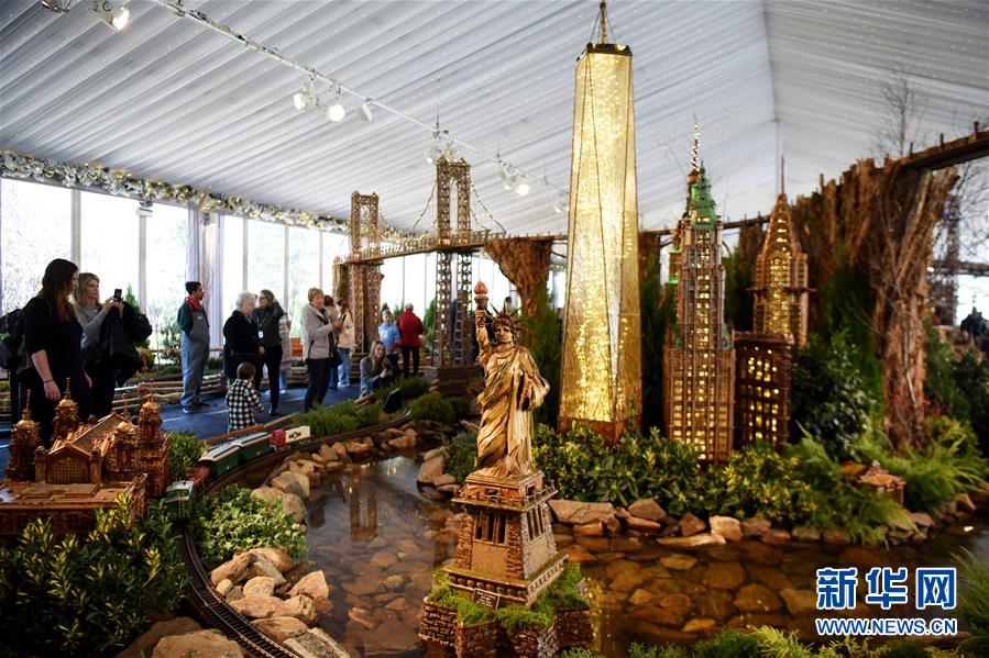 紐約植物園節(jié)日小火車展是紐約冬季傳統(tǒng)活動(dòng)之一,迄今已舉辦28屆。今年的小火車展從2019年11月23日持續(xù)至2020年1月26日。各式火車模型穿行在用樺樹皮、橡果、肉桂條等天然材料制成的175個(gè)紐約經(jīng)典地標(biāo)微縮模型中,為游客帶來歡樂的節(jié)日氣氛。