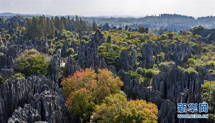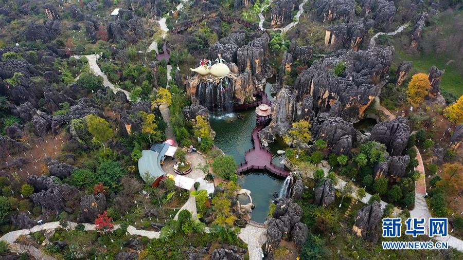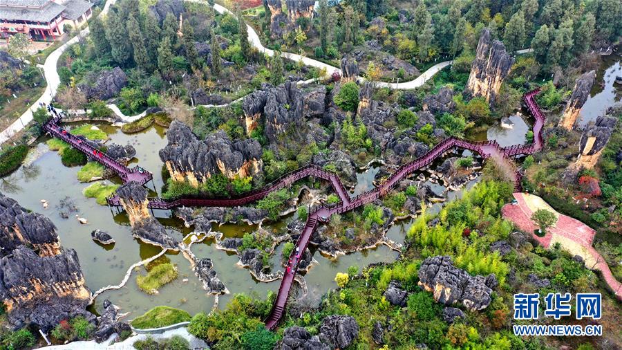 11月28日,空中俯瞰石林景區(qū)(無人機(jī)拍攝)。新華社記者江文耀攝