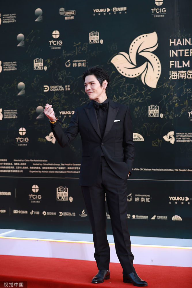 12月1日,演員陳小春亮相電影節(jié)紅毯儀式。 當(dāng)日,第二屆海南島國際電影節(jié)在三亞開幕。 新華社記者 郭程 攝