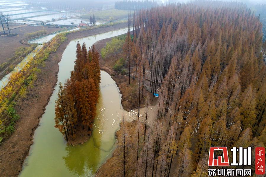 江蘇泗洪5000多只鵝林場(chǎng)吃食 場(chǎng)面壯觀