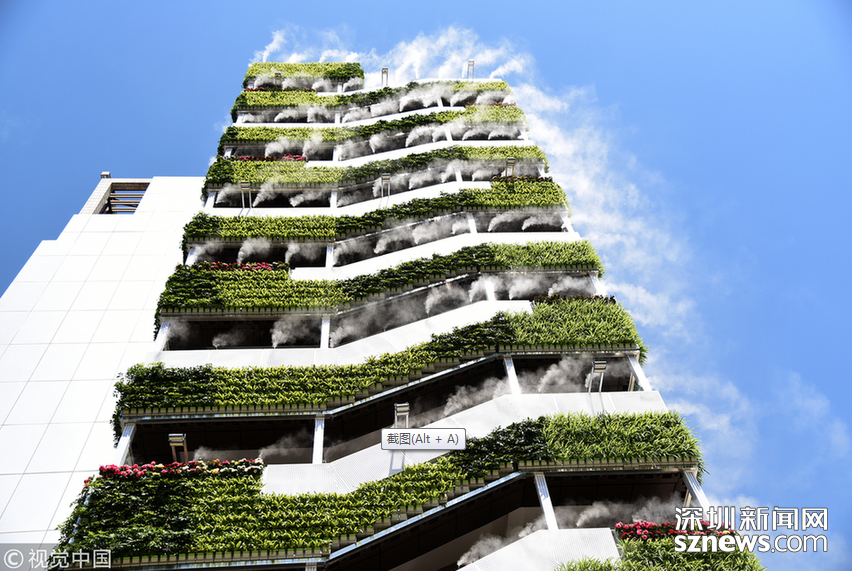 “仙氣飄飄”、“西安天氣有多熱,房子都冒煙了”,這是一段抖音小視頻里網(wǎng)友的評(píng)論留言。視頻中一棟10層高的樓外側(cè)樓梯處掛滿(mǎn)了綠植,同時(shí)綠植上方還有噴霧。藍(lán)藍(lán)的天空當(dāng)做背景,引來(lái)不少人上前拍照,配著背景音樂(lè)的確讓人感覺(jué)清涼無(wú)比。