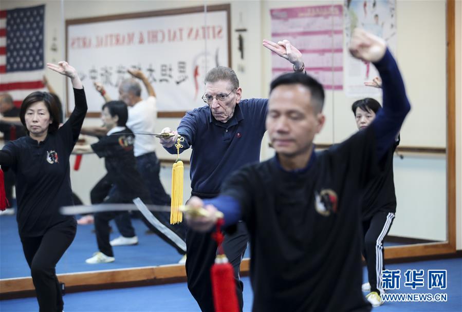 陳思坦在位于美國紐約長島的思坦太極武術(shù)中心帶學(xué)員練習(xí)太極劍(11月20日攝)。11月的紐約已進入初冬,位于美國紐約長島的思坦太極武術(shù)中心依然一片紅火景象,學(xué)員們從5歲的孩童到80多歲的老人,操練著太極拳、太極劍、長拳等武術(shù)招式。這里的主人陳思坦、林旭夫婦,也從早忙到晚,精心指導(dǎo)每一位學(xué)員的一招一式。6歲習(xí)武,22歲成為中國全國冠軍,26歲獲得首個世界冠軍……直到30歲退役,陳思坦在運動員生涯中曾獲得過32次國內(nèi)外各類武術(shù)大賽冠軍。36歲那年,懷著以太極拳和中國武術(shù)為媒介向世界推廣中國文化的夢想,陳思坦到美國紐約尋找新的舞臺。經(jīng)過十多年的艱苦打拼,陳思坦夫婦目前在紐約長島、法拉盛和曼哈頓都開設(shè)了長期的課程,思坦太極注冊在編的各個年齡段的學(xué)員近千人,有些“高徒”現(xiàn)在自己也開班授課,將太極推向更多地方。陳思坦夫婦現(xiàn)在思考更多的是如何將太極和武術(shù)推廣給更多的美國人,并讓他們理解其中蘊含的平衡、和諧的中國文化理念。他們創(chuàng)辦了紐約太極健身氣功活動日,在各類學(xué)校和社區(qū)開設(shè)太極或者武術(shù)課程,并利用美國的亞太裔文化月和多元文化節(jié)舉行武術(shù)和太極表演和體驗課程,讓更多美國人親眼看到、親身體會中國武術(shù)的魅力。從2011年起,他們還參與創(chuàng)辦了紐約太極大賽,如今已舉行九屆,吸引了美國、加拿大和中國國內(nèi)的隊伍參賽,影響力逐漸擴大。新華社記者王迎攝