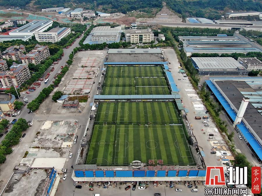 2019年9月4日,重慶,網(wǎng)紅重慶又現(xiàn)魔幻建筑。重慶一樓頂現(xiàn)“空中足球場(chǎng)”,形成了一道立體壯觀景象。