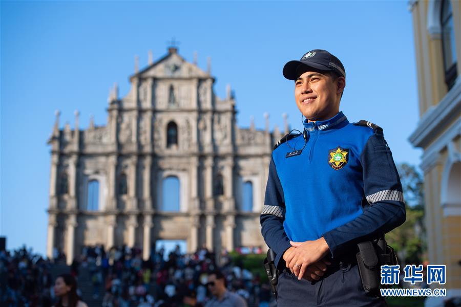 11月28日,澳門治安警察局旅游警察關(guān)天恒在大三巴牌坊附近巡邏,他已經(jīng)工作了2年,主要負(fù)責(zé)維持社會(huì)治安及解答游客問(wèn)題。 新華社記者 張金加 攝