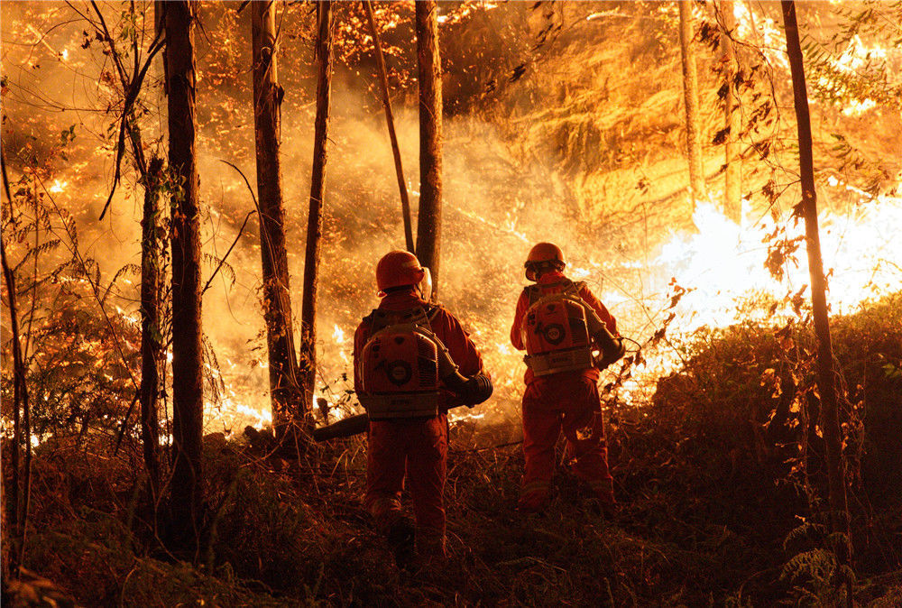 2019年12月7日凌晨一時(shí)多,廣東佛山,來(lái)自英德東華鎮(zhèn)的消防員們摸黑上山作業(yè)。經(jīng)過(guò)大約一個(gè)小時(shí)的奮戰(zhàn)后,山頭明火得到有效控制。