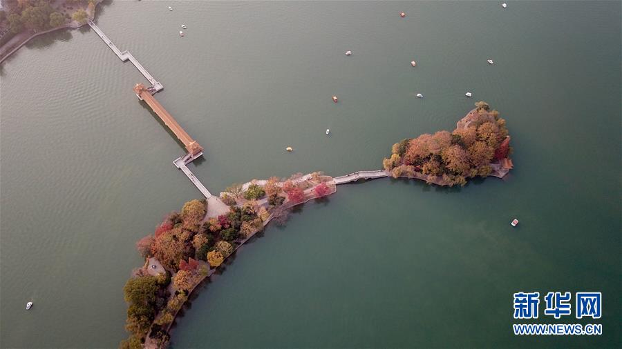 12月10日,小船在湖南烈士公園年嘉湖湖面行駛(無(wú)人機(jī)拍攝)。新華社記者陳澤國(guó)攝