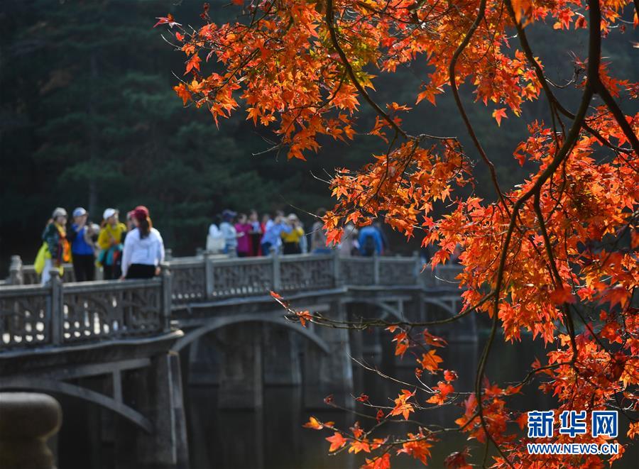 11月17日,游客在廬山如琴湖邊游玩。新華社記者胡晨歡攝