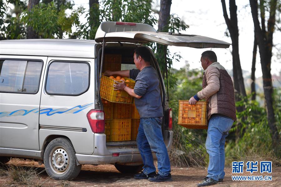 12月9日,廣西柳州市鹿寨縣四排鎮(zhèn)江南村村民將剛剛采收的蜜橙搬上車,準(zhǔn)備外銷。新華社記者 黃孝邦 攝