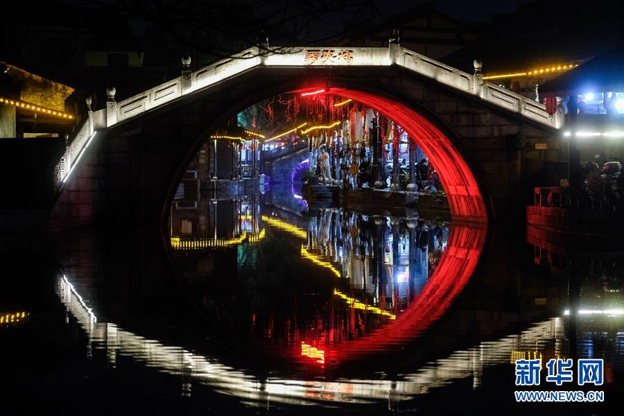 夜色中的安昌古鎮(zhèn)(12月11日攝)。新華社記者徐昱攝