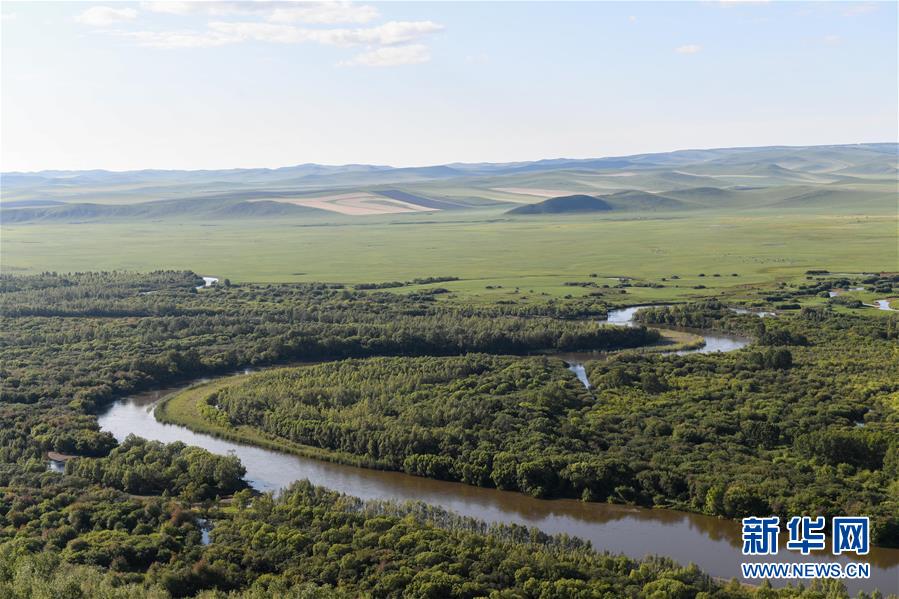 8月29日無人機拍攝的內蒙古呼倫貝爾市額爾古納濕地景區(qū)。新華社記者劉磊攝