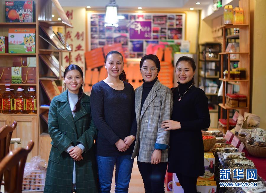 李柳萍和員工在特產(chǎn)館里工作(12月14日攝)。新華社記者黃孝邦攝