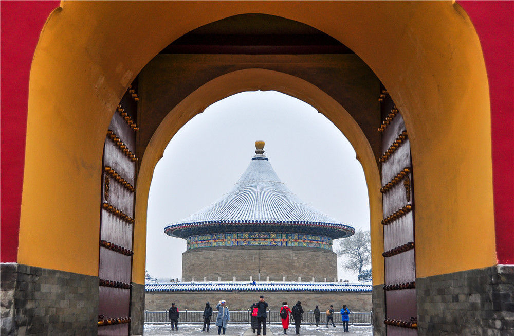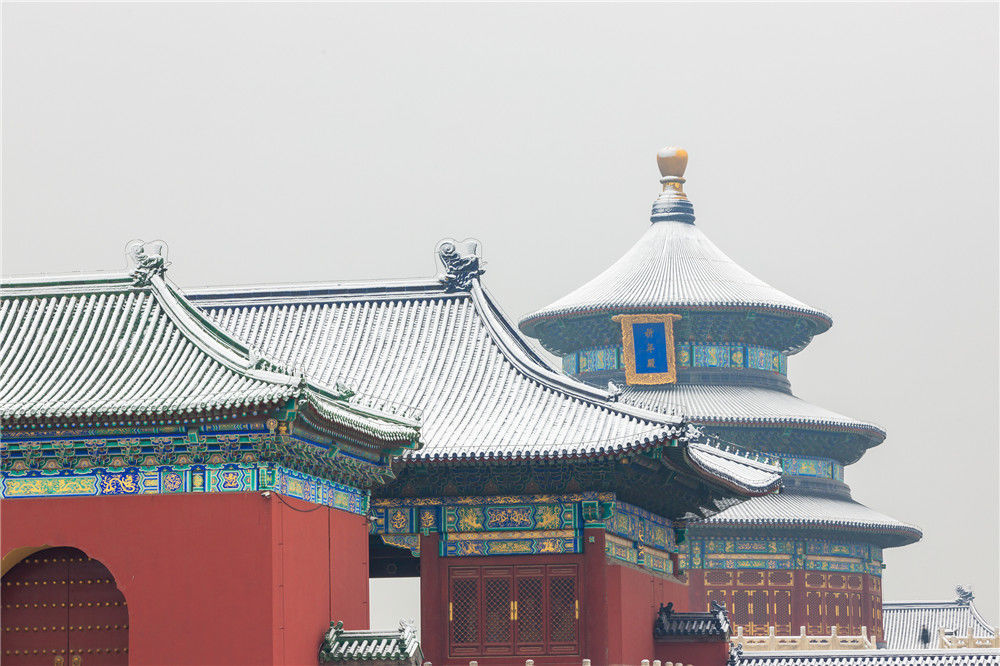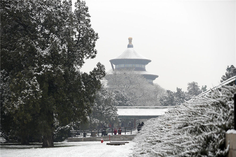 2019年11月30日,北京,初雪過后,天壇公園銀裝素裹,白雪古建相互映襯,景色迷人。時永平/千龍圖像/視覺中國