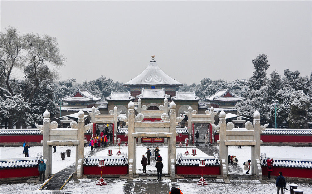 12月16日,人們在天壇公園觀賞雪景。當日,北京迎來降雪天氣。新華社記者鞠煥宗攝