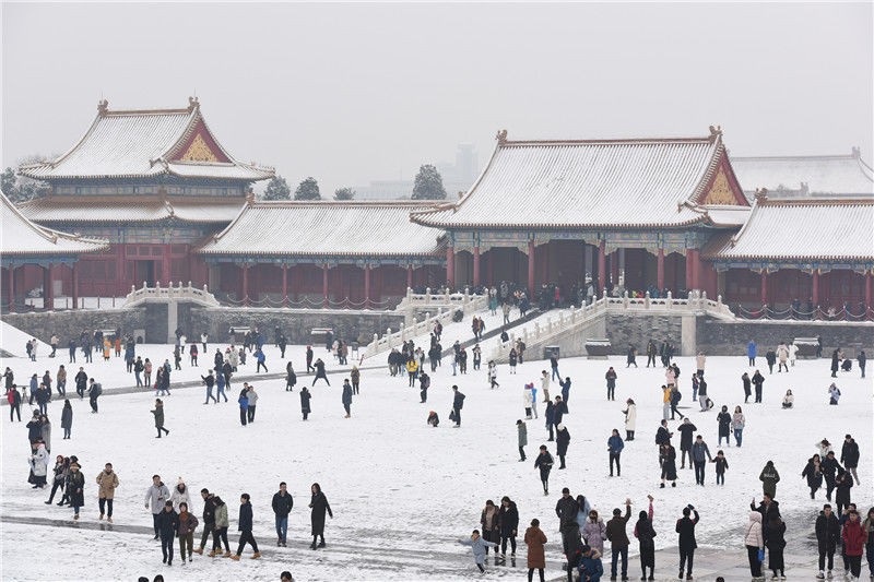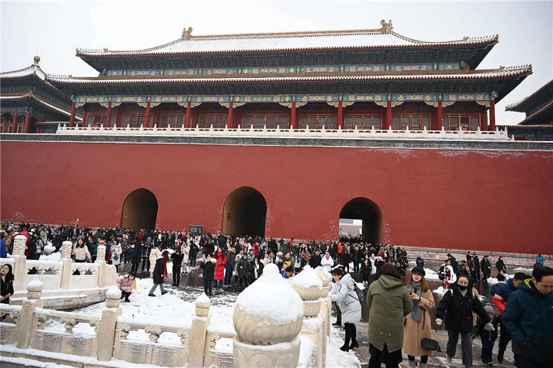 初雪后故宮銀裝素裹游客排隊打卡