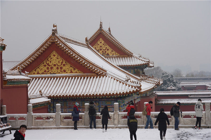 2019年11月30日,北京,初雪過后,故宮美景如畫,吸引大批游客前來“打卡”。