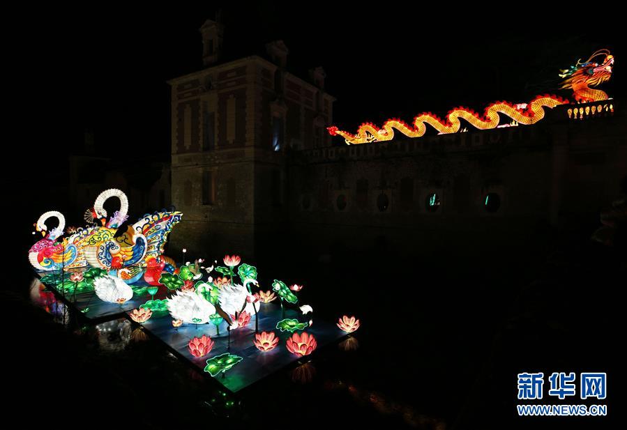 這是12月15日在法國(guó)謝爾河畔塞勒市的塞納古堡拍攝的中國(guó)彩燈。 新華社記者 高靜 攝