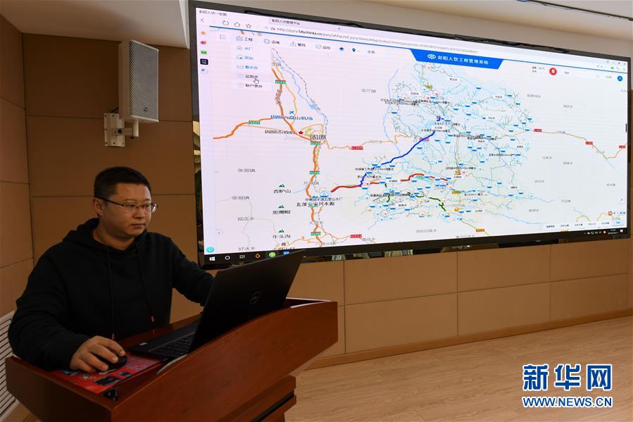 在寧夏固原市彭陽縣供水管理總站中控室,工作人員展示彭陽人飲工程管理系統(tǒng)(10月11日攝)。  新華社記者 馮開華 攝