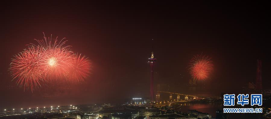 12月22日,煙花在澳門上空綻放。當(dāng)晚,澳門與珠海首次聯(lián)合舉行煙花匯演,慶祝澳門回歸20周年。新華社記者呂小煒攝
