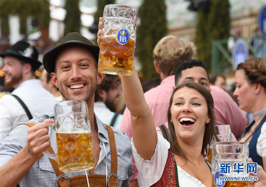 2019年9月21日,人們在第186屆德國慕尼黑啤酒節(jié)上享用啤酒。 新華社記者 逯陽 攝