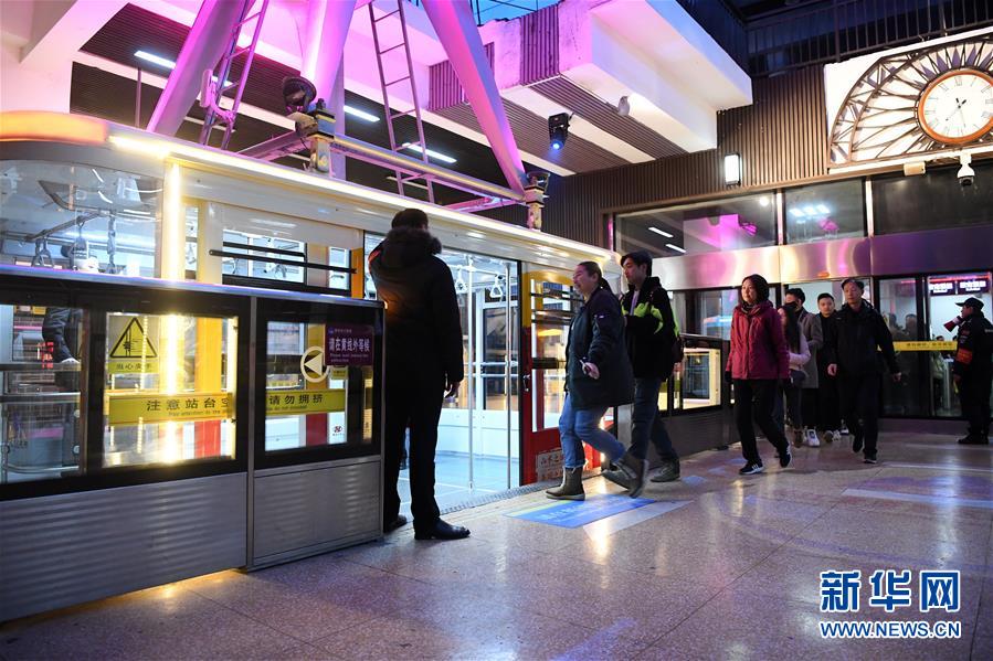 12月23日,前來體驗的游客排隊進入索道轎廂。新華社記者唐奕攝