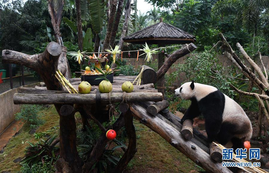 海口:大熊貓“擼串”迎新年
