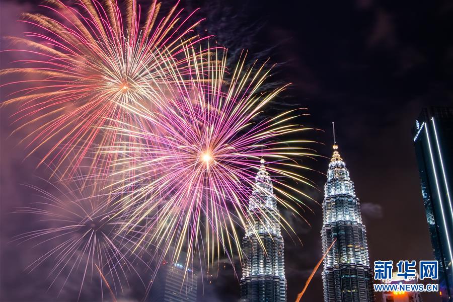 2020年1月1日,焰火在馬來(lái)西亞吉隆坡的馬來(lái)西亞國(guó)家石油公司雙塔旁綻放,迎接新年的到來(lái)。新華社記者朱煒攝