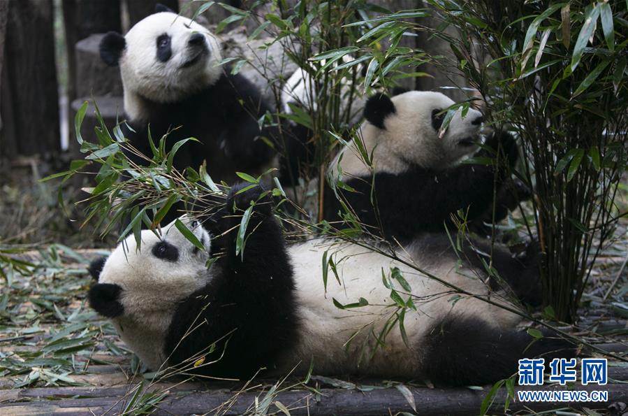 這是1月1日在成都大熊貓繁育研究基地拍攝的大熊貓。 新華社記者 李夢馨 攝