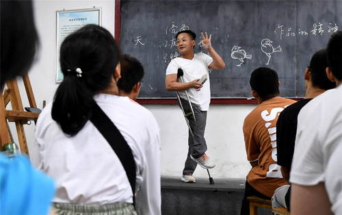 2019年9月9日,在位于西安市的陜西省城市經(jīng)濟(jì)學(xué)校,計(jì)算機(jī)平面設(shè)計(jì)專業(yè)的美術(shù)老師王旭陽在給新生講授繪畫基礎(chǔ)知識。該校是西安唯一一所針對殘障人士設(shè)立的特殊教育中等職業(yè)學(xué)校。新華社記者劉瀟攝