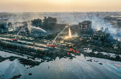 2019年3月23日拍攝的江蘇省鹽城市響水縣天嘉宜化工有限公司“3·21”特別重大爆炸事故現(xiàn)場(無人機(jī)照片)。新華社記者李博攝