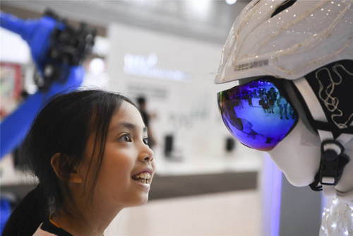 2019年8月25日,一名小朋友在2019智博會(huì)主會(huì)場重慶國際博覽中心參觀。新華社記者王全超攝