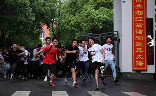 2019年6月8日,高考結(jié)束后,考生沖出湖南省長沙市第一中學(xué)考點(diǎn)。新華社記者薛宇舸攝