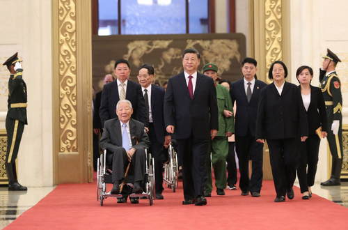 2019年9月29日,中華人民共和國國家勛章和國家榮譽(yù)稱號頒授儀式在北京人民大會(huì)堂金色大廳隆重舉行。中共中央總書記、國家主席、中央軍委主席習(xí)近平同國家勛章和國家榮譽(yù)稱號獲得者一同步入會(huì)場。新華社記者丁海濤攝