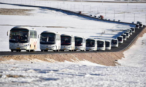 2019年12月23日拍攝的西藏那曲市雙湖縣牧民的遷徙車隊(duì)。西藏那曲市雙湖縣嘎措鄉(xiāng)、措折羌瑪鄉(xiāng)、雅曲鄉(xiāng)共2900人,告別了平均海拔5000米的家鄉(xiāng),經(jīng)過近千公里搬遷到海拔相對較低的藏南雅魯藏布江南岸的貢嘎縣境內(nèi)。這是西藏自治區(qū)近年來實(shí)施的極高海拔生態(tài)搬遷項(xiàng)目之一,雙湖縣三個(gè)鄉(xiāng)的整體搬遷是其中人數(shù)最多、跨度最遠(yuǎn)的一次搬遷。新華社記者覺果攝