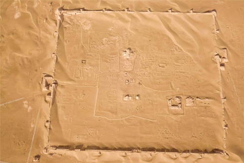 2019年10月18日拍攝的黑城遺址城池全貌(無人機照片)。黑城遺址位于內(nèi)蒙古阿拉善盟額濟納旗達來庫布鎮(zhèn),建于公元九世紀(jì),是草原絲綢之路上現(xiàn)存較為完整的一處古城遺址,2001年被列入第五批全國重點文物保護單位。新華社記者彭源攝