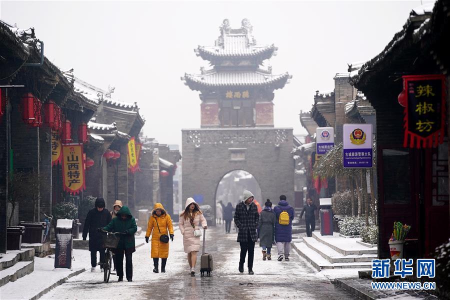 1月5日,游人在平遙古城內(nèi)游覽。新華社記者詹彥攝
